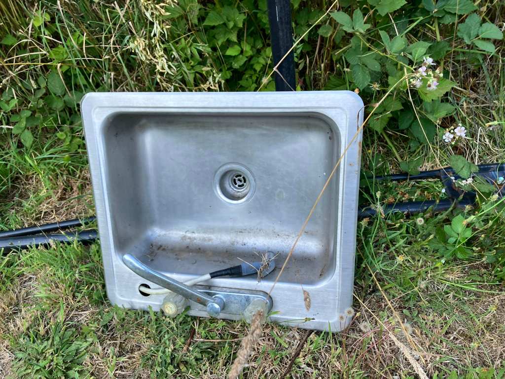 This stainless steal sink got saved from going to the dump, and I will be building a start to my outside living area. Using free pallet wood, I will make a table for this sink that can be used as a produce washing station, a fish cleaning or chicken processing table, a potting table….for next to free and for a whole lot less then what similar outdoor table sink combos cost. And I can learn how to use the tools and learn some simple building skills. Here is a link to a simple one built by someone on YouTube.