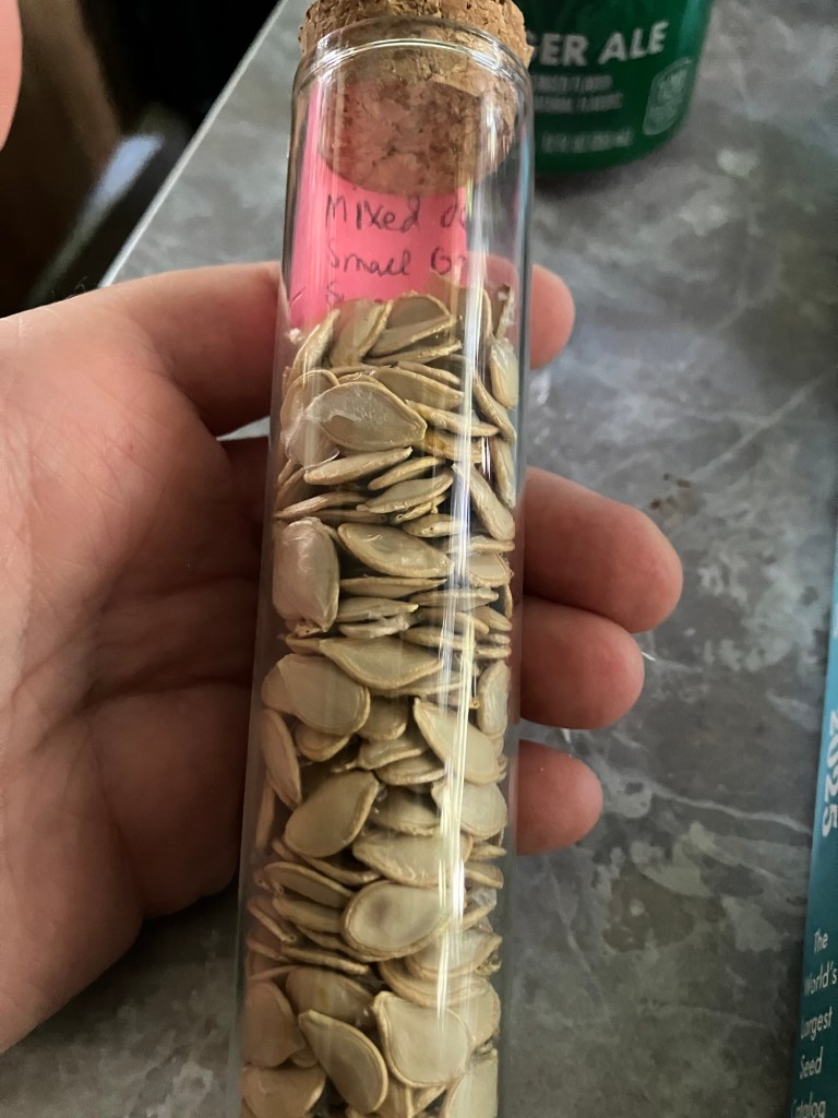 The picture above are small decorative gourds I grew out this year. I did not keep them from crossing with each other but I could have. I just didn’t because they are just decorative small ones with little to no other value (though the seeds are quite edible like other squash). They are just a fun crop so can look any which way they want. They maybe someday might stabilize into a land race after years and years of random mixing.