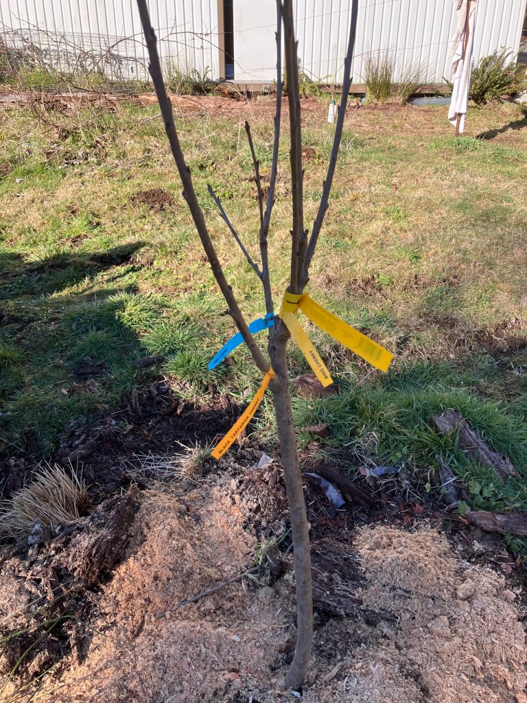 Despite the cold 21° start here it warmed up enough for me to spot a couple little bees out and about checking out the garden. I came home from work this morning and felt the need to get outside myself, so I planted a few trees (3 fruit trees and my little Yule tree) and I pruned the new ones. I planted a few primroses mainly because dad loved the primroses I had grown at the farm. I relaxed in the sun, to recharge. Then I pruned the grape vine that was here already. It had been planted but not really trained. So I had to really cut it back a lot to start training it. I had a bit of “help” from the barn kitten. The boy barn kitten I had gotten fixed and he’s at his new home. We will be keeping Freya because she smarter. Zeus was super friendly but had no fear of anything and was going to get himself killed here. He needed a pet home where he could be safe indoors rather than a working home. Freya is friendly, but she knows not to walk right up to danger. After that, I filled raised beds with more garden “junk.” That’s clippings and things that will slowly rot but help fill the beds. Tomorrow I will pick up soil to start finishing them off. It won’t be much longer before I can plant kale, onions, lettuce etc. and I want the beds to all be settled when it’s time to plant.