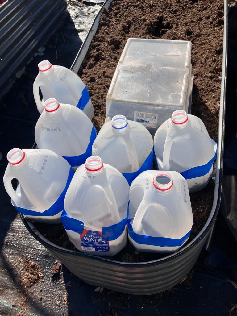 I fertilized the onion and asparagus seedlings with an organic liquid fertilizer, greatly diluted for the first time. In the past, I really never fertilized seedlings. They got what they got in the seed starter mix with a bit of worm castings mixed in. But I especially need the garden to thrive like never before. So I am giving it a go.