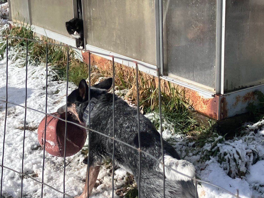 And while i was measuring and cutting PVC pipe for the garden bed hoops with my handy dandy mini-hacksaw, there were some shenanigans going on.