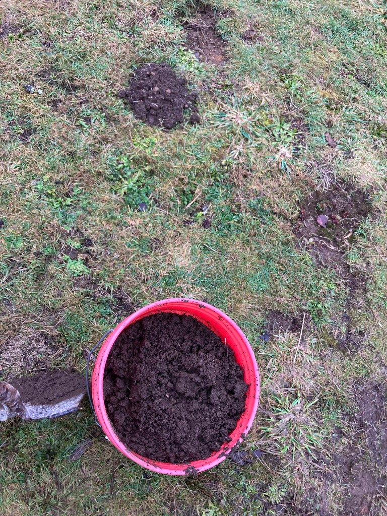 I gathered some mole hill mounds to help fill a small raised bed mixed with some better compost/bagged soil.