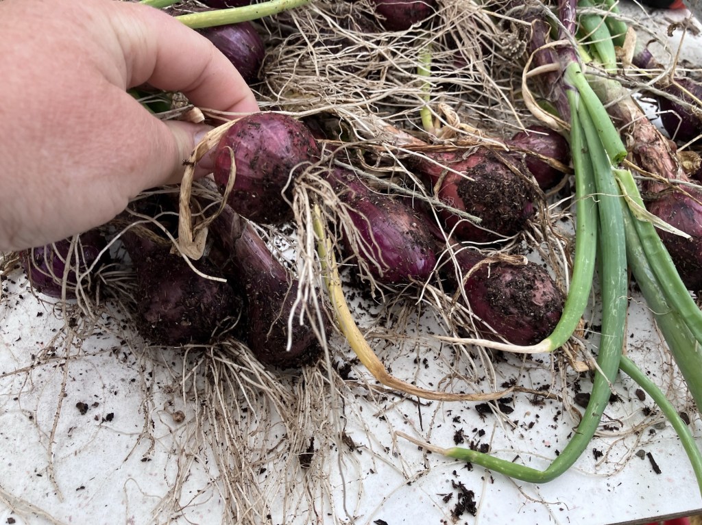 This is the worst harvest of onions I have ever had. Could be a few reasons for this but the soil I know was good. I have always grown whoppers and prize winners so these little sad things are disappointing. At least I don’t eat onions. My friends do. They can still eat these small ones.