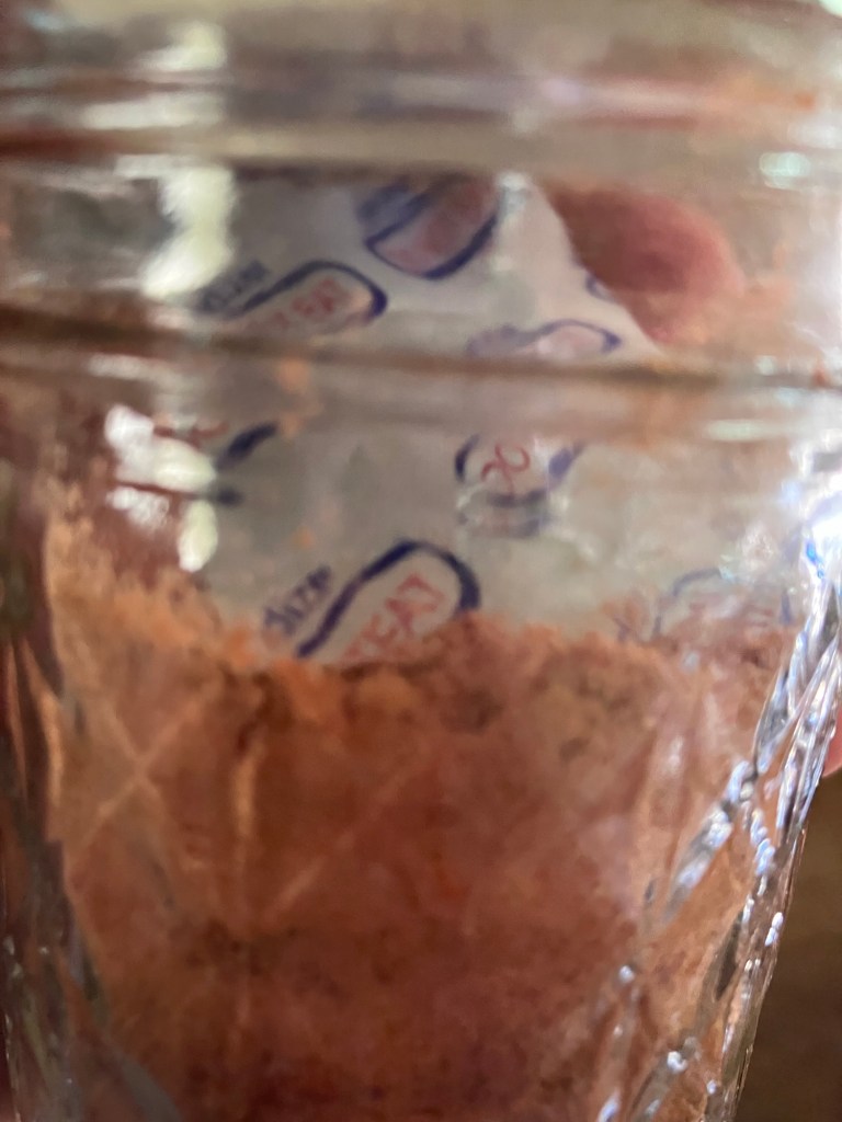 In the mean time I have been dehydrating things as well. I finished up the tomatoes from the garden, some of which I powdered to use as paste/sauce/seasoning.