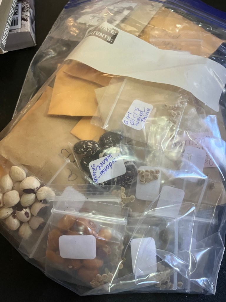 So I have started to inventory my seeds. And that’s why they are on my mind this morning. An inventory done via spreadsheet helps me to see what seeds I need to grow out to keep the collection fresh and healthy. It lets me see what I’m low on and what I need to trade or purchase. It helps me plan for the next year’s garden.